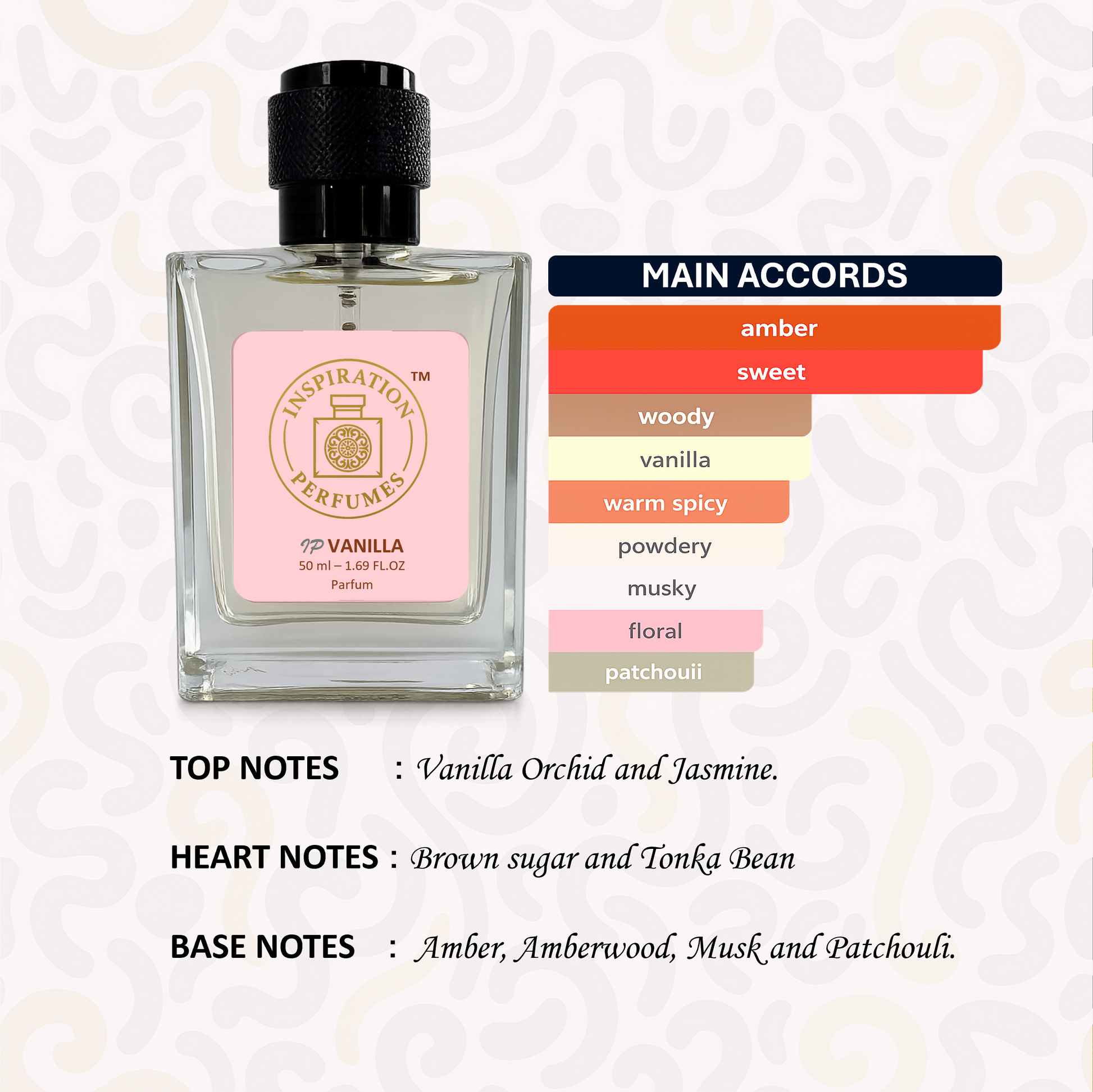 Top Notes: Vanilla, Orchid, and Jasmine.
